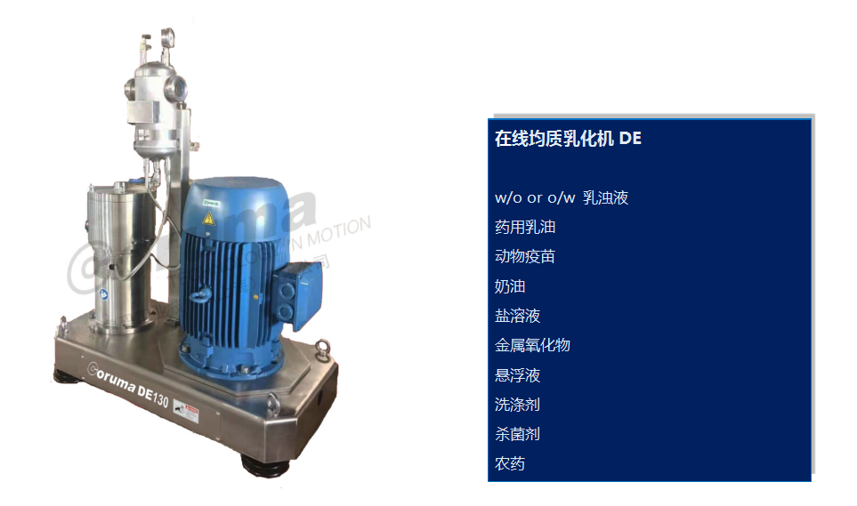 由于他们的特殊转子-定子工具,科鲁玛高剪切乳化机实现高吞吐量,特别强的剪切力产品与优质材料热交换。这使他们可以连续式工艺进程中使用,例如: