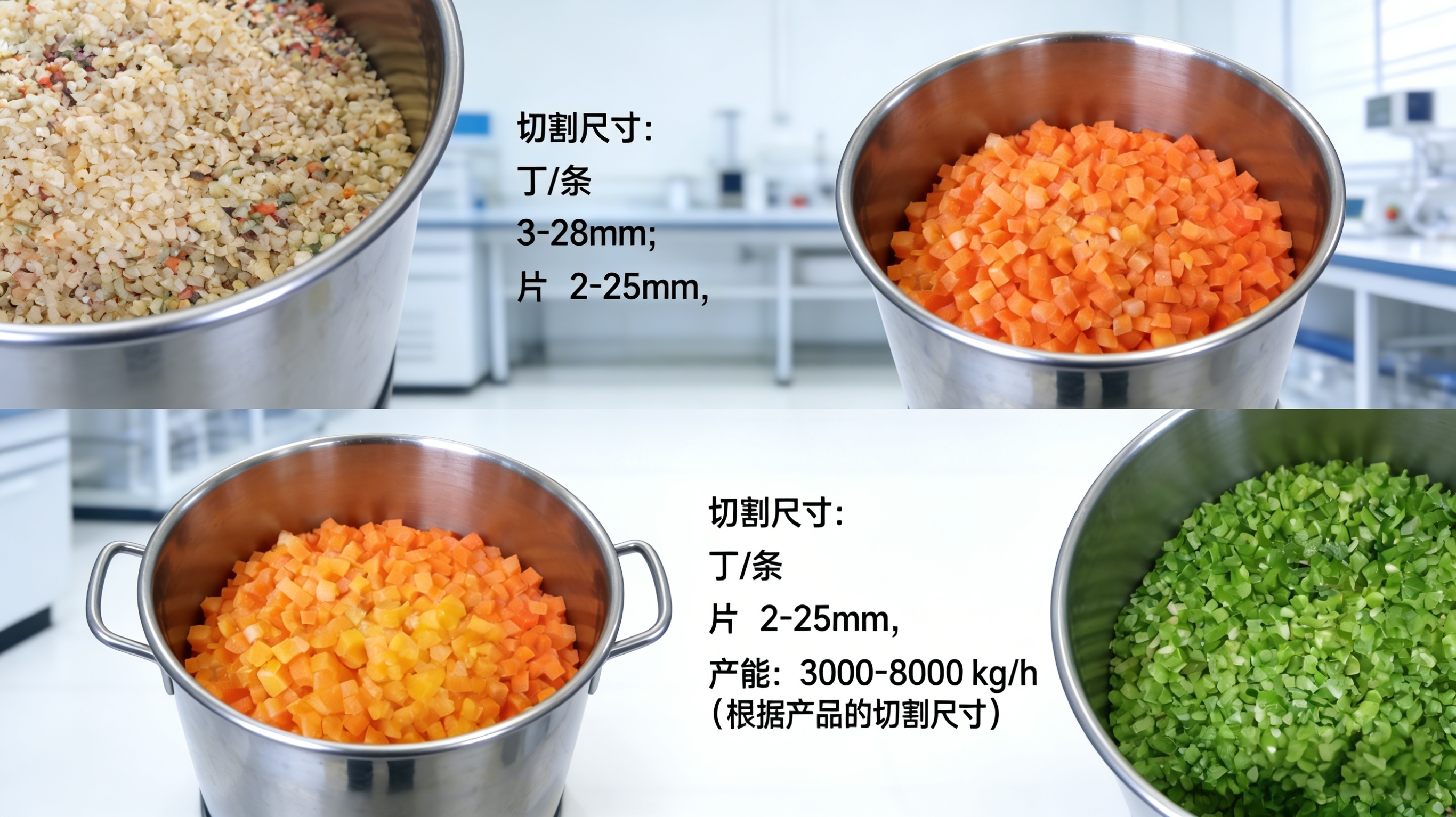 典型应用案例:山东某速冻果蔬加工企业在旺季土豆丁需求激增时,引入科鲁玛CMN1319型,将原先3台老设备缩减为1台,日产能从12吨提升至18吨,同时每吨产品人工成本下降40%,废料率从5%降至2%